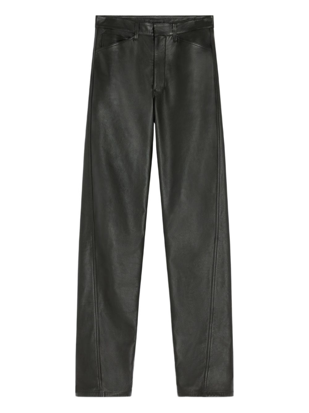 Twisted five-pocket leather trousers