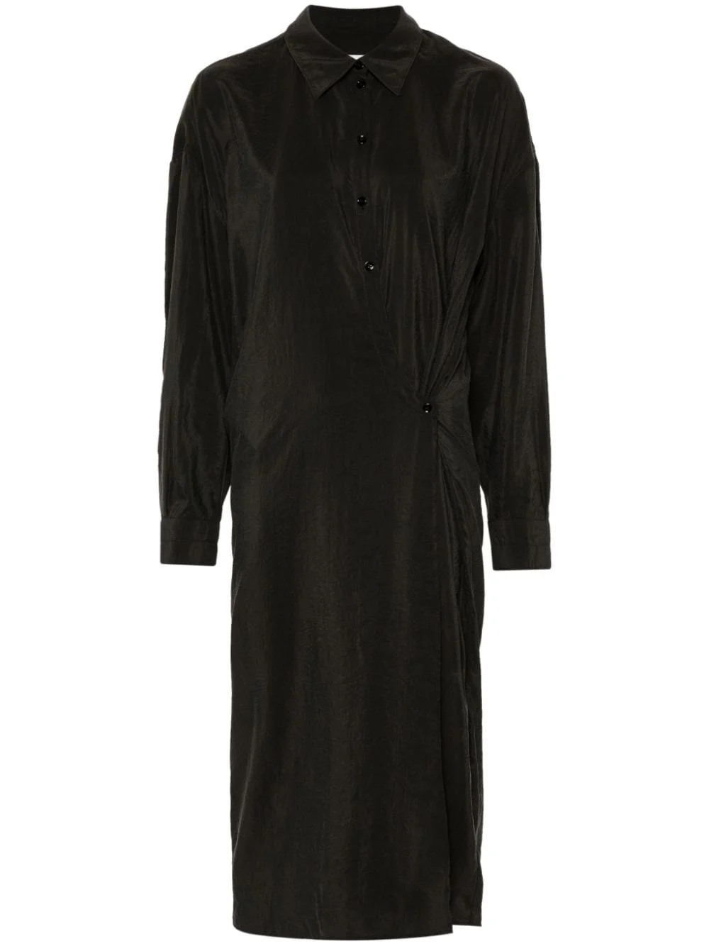 twisted straight-collar dress Highlights - Coffee brown - Silk blend - Twist detailing - Classic collar - Front button fastening - Drop shoulder - Long sleeves with buttoned cuffs - Shift style - Straight hem - Mid-length Imported Composition Silk 76%, Polyamide 24% SIZE & FIT Model measurements Height 5 ft 10 in(1.78 m) Bust/Chest 32.67 in(83 cm) Hips 35.43 in(90 cm) Waist 23.22 in(59 cm) FittingInformation Designed for a relaxed fit, this piece allows for comfort and movement when worn Made from a lightweight non-stretch fabric This piece fits true to size – take your usual size