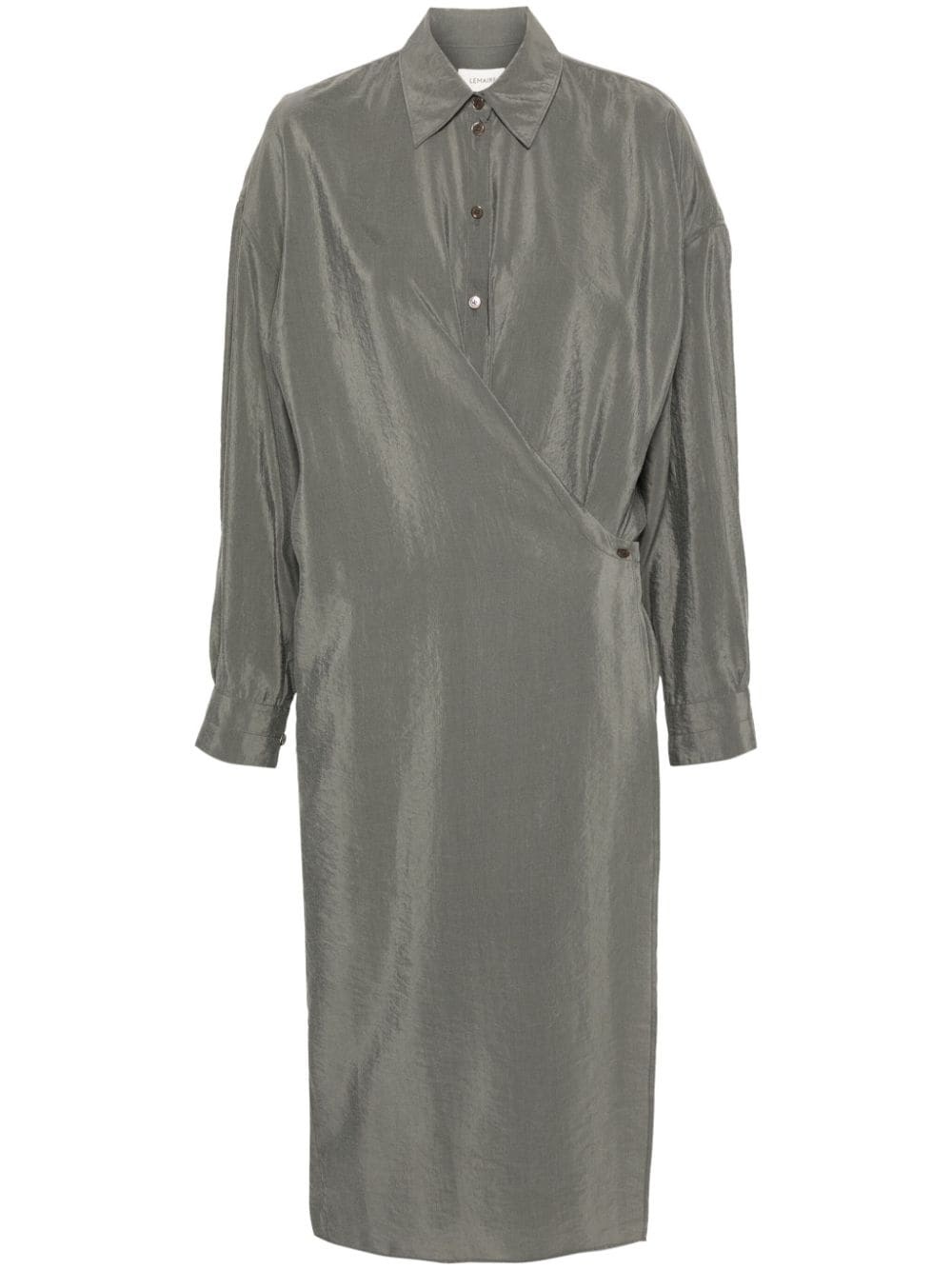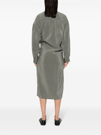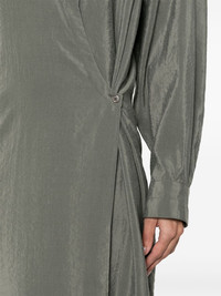 Twisted wrap midi dress Highlights - Ash grey - Silk blend - Wrap design - Classic collar - Drop shoulder - Long sleeves with buttoned cuffs - Side slit - Straight hem - Mid-length - Internal tie fastening - Off-centre front button placket Imported Composition Silk 76%, Polyamide 24% SIZE & FIT FittingInformation Designed for a loose fit at the chest and waist with a close fit at the hips Made from a midweight non-stretch fabric This piece fits true to size – take your usual size