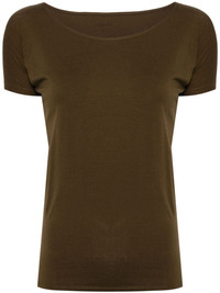 U-neck T-shirt Highlights - Brown - Stretch-cotton - Stretch-jersey - U-neck - Short sleeves - Straight hem Imported Composition Cotton 93%, Elastane 7% SIZE & FIT Model measurements Height 5 ft 9 in(1.76 m) Bust/Chest 31.1 in(79 cm) Hips 35.03 in(89 cm) Waist 24.4 in(62 cm) FittingInformation Designed for a slim fit that sits just away from the body offering a close yet comfortable fit Made from a midweight stretch fabric, this piece offers elasticity and flexibility when worn This piece fits true to size – if you would prefer a looser fit to layer, take one size up