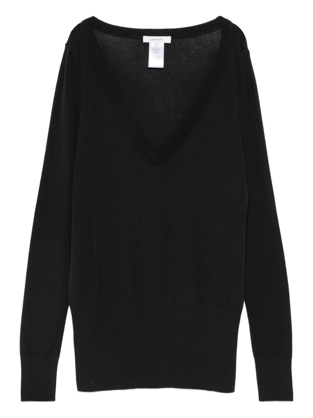 V-neck top Highlights - Black - Fine knit - V-neck - Long sleeves Made in France Composition Wool 100% SIZE & FIT Model measurements Height 6 ft 1 in(1.85 m) Bust/Chest 35.82 in(91 cm) Hips 37.79 in(96 cm) Waist 29.13 in(74 cm) Washing instructions Hand Wash