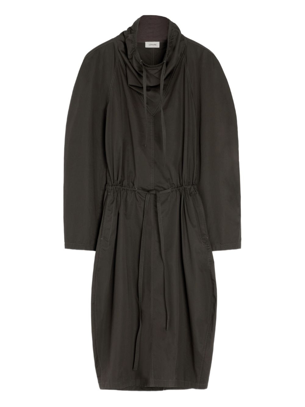 Vareuse raglan-sleeve drawstring midi dress Highlights - Dark espresso - High neck - Drawstring waist - Raglan sleeves - Side pockets - Round skirt - Back vent Imported Composition Fabric 100% Washing instructions Read Manufacturer Guidelines