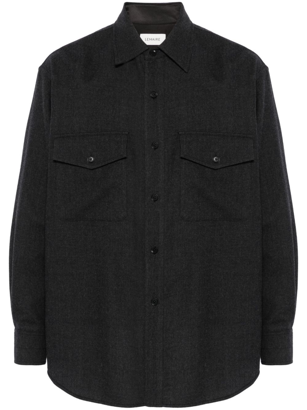 virgin-wool shirt Highlights - Anthracite grey - Virgin wool - Interlock twill weave - Front button fastening - Pointed flat collar - Long sleeves - Pleat detailing - Buttoned cuffs - Two chest flap pockets - Unlined - Curved hem Imported Composition Outer: Virgin Wool 100% Lining: Viscose 100% SIZE & FIT Model measurements Height 6 ft 2 in(1.87 m) Bust/Chest 35.82 in(91 cm) Hips 35.82 in(91 cm) Waist 31.88 in(81 cm) FittingInformation Designed to be unstructured, offering a loose fit throughout Made from a midweight non-stretch fabric