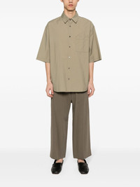 voile shortsleeved shirt Highlights - Khaki - Cotton blend - Voile - Spread collar - Double chest patch pocket - Short sleeves - Curved hem - Front button fastening Imported Composition Cotton 84%, Polyamide 16% SIZE & FIT Model measurements Height 6 ft 2 in(1.87 m) Bust/Chest 33.46 in(85 cm) Hips 36.22 in(92 cm) Waist 29.52 in(75 cm) FittingInformation Designed to be unstructured, offering a loose fit throughout Made from a midweight non-stretch fabric This piece fits true to size – take your usual size