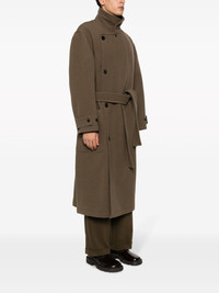 belted double-breasted coat Highlights - Brown - Wool - Wrap design - Funnel neck - Belted waist - Off-centre front button fastening - Long sleeves - Belted cuffs - Cotton lining - Calf-length - Straight hem - When buying this unisex item, keep in mind that it is graded in standard men's sizing. Imported Composition Outer: Wool 100% Lining: Cotton 100% SIZE & FIT Model measurements Height 6 ft 2 in(1.87 m) Bust/Chest 36.41 in(92.5 cm) Hips 35.43 in(90 cm) Waist 29.52 in(75 cm) FittingInformation This unisex piece is designed for an oversized fit whether you usually select women's or men's sizes The tie fastening gives an adaptable and personalised fit Made from a midweight non-stretch fabric Washing instructions Dry Clean Only