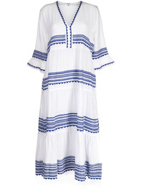 Yani flutter dress Highlights - White/cobalt blue - Cotton blend - Embroidered design - V-neck - Short sleeves - Long length Imported Composition Cotton 95%, Acrylic 5% SIZE & FIT Measurement SLEEVE LENGTH 11.02 in(28 cm) LENGTH 48.81 in(124 cm) WAIST 41.73 in(106 cm) BUST 34.64 in(88 cm) Shoulder Width 15.74 in(40 cm) Washing instructions Hand Wash