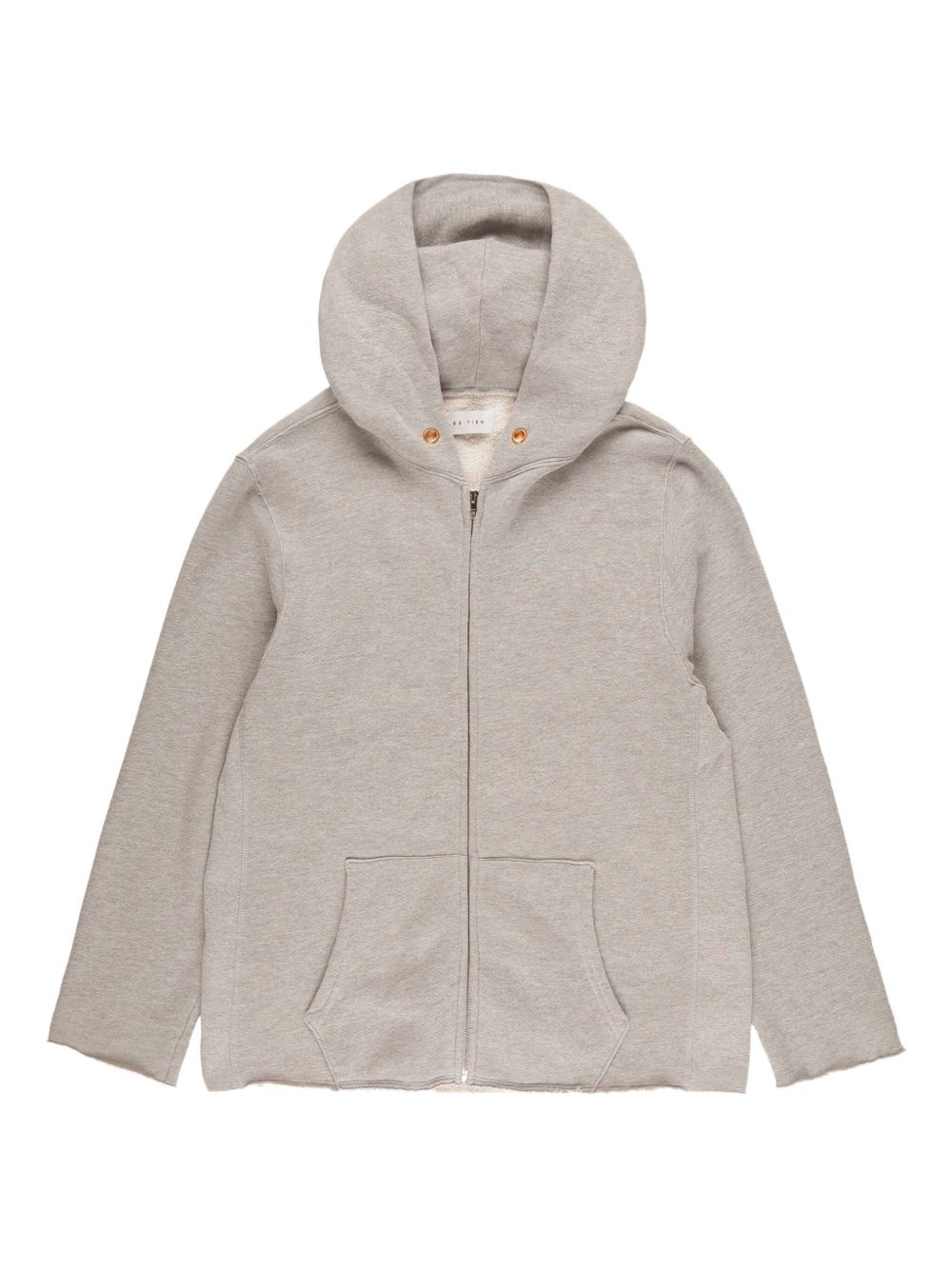 raw-edge front-zip hoodie Highlights - Heather grey - Zip fastening - Hooded - Raw edge hem - Long sleeves - Pouch pockets Made in United States Composition Cotton 100%