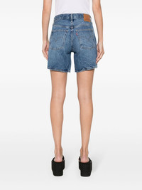 501 cotton denim shorts Highlights - Medium blue - Cotton - Denim - Whiskering effect at the thighs - Logo patch to the rear - Belt loops - Classic five pockets - Thigh-length - Front button fastening Imported Composition Cotton 100% SIZE & FIT FittingInformation Designed for a slim fit that sits just away from the body offering a close yet comfortable fit Sturdy and hard-wearing, this denim piece offers no stretch This piece fits true to size – take your usual size Washing instructions Machine Wash