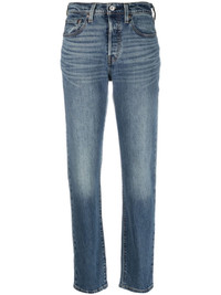 501 cropped jeans Highlights - Indigo blue - Stretch-cotton - Washed denim - Logo patch to the rear - Mid-rise - Front button and zip fastening - Belt loops - Classic five pockets - Straight leg Imported Composition Cotton 99%, Spandex/Elastane 1% SIZE & FIT Model measurements Height 5 ft 10 in(1.77 m) Bust/Chest 31.1 in(79 cm) Hips 35.03 in(89 cm) Waist 23.62 in(60 cm) FittingInformation Designed for a straight-leg fit, these jeans allow for a close fit at the waist and an unrestricted and comfortable fit over the leg Constructed from stretch denim, this piece offers a stretch fit with durability This piece fits true to size – take your usual size