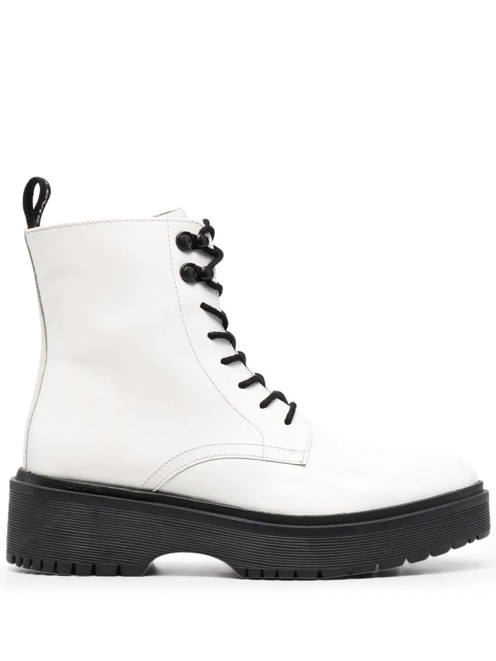 Bria two-tone platform boots white/black leather two-tone design almond toe front lace-up fastening pull-tab at the heel ankle-length platform sole low ridged heel ridged rubber sole Imported Composition Leather 100% SIZE & FIT Measurement HEEL 2.16 in(5.5 cm) HEIGHT 5.31 in(13.5 cm) Sole height 1.18 in(3 cm) CIRCUMFERENCE 9.05 in(23 cm)