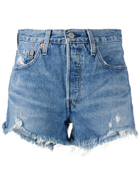 distressed jean shorts Blue cotton distressed jean shorts from Levi's featuring a waistband with belt loops, a five pocket design, a short length and raw edges. Imported Composition Cotton 100% Washing instructions Machine Wash