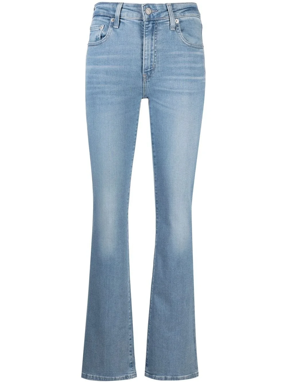 725 high-rise bootcut jeans Highlights - Light indigo blue - Cotton-lyocell blend - Light wash - Crease effect - Logo patch to the rear - Belt loops - Front button and zip fastening - Classic five pockets - Slim cut - Flared Imported Composition Cotton 85%, Lyocell 7%, Polyester 6%, Elastane 2% SIZE & FIT Model measurements Height 5 ft 11 in(1.8 m) Bust/Chest 31.49 in(80 cm) Hips 36.61 in(93 cm) Waist 24.4 in(62 cm) FittingInformation This piece fits true to size. We recommend you get your regular size Designed to be fitted at the waist and through the thigh, loose from the knee Made with a mid-weight stretch fabric
