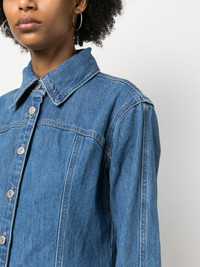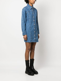 long-sleeve button-up mini dress Highlights - Light blue - Cotton - Denim - Classic collar - Front zip fastening - Long sleeves - Above-knee length Imported Composition Cotton 100% SIZE & FIT Model measurements Height 5 ft 11 in(1.8 m) Bust/Chest 31.49 in(80 cm) Hips 35.82 in(91 cm) Waist 24.8 in(63 cm) FittingInformation Designed for a relaxed fit, this piece allows for comfort and movement when worn Made from a midweight non-stretch fabric This piece fits true to size – take your usual size Washing instructions Machine Wash