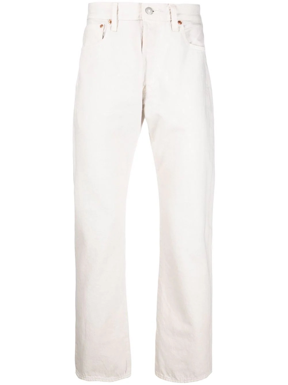 My Candy mid-rise straight-leg jeans A casualwear staple, these jeans from Levi's are cut to a relaxed wide-leg silhouette and are patched with logo detailing to the rear. Highlights - Off-white - Cotton - Denim - Logo patch to the rear - Mini logo tag - Straight leg - Button fly fastening - Belt loops - Classic five pockets Imported Composition Cotton 100% SIZE & FIT Model measurements Height 6 ft 2 in(1.87 m) Bust/Chest 36.41 in(92.5 cm) Hips 37 in(94 cm) Waist 29.52 in(75 cm) FittingInformation This piece fits true to size. We recommend you get your regular size Regular fit Made with a mid-weight non-stretch fabric
