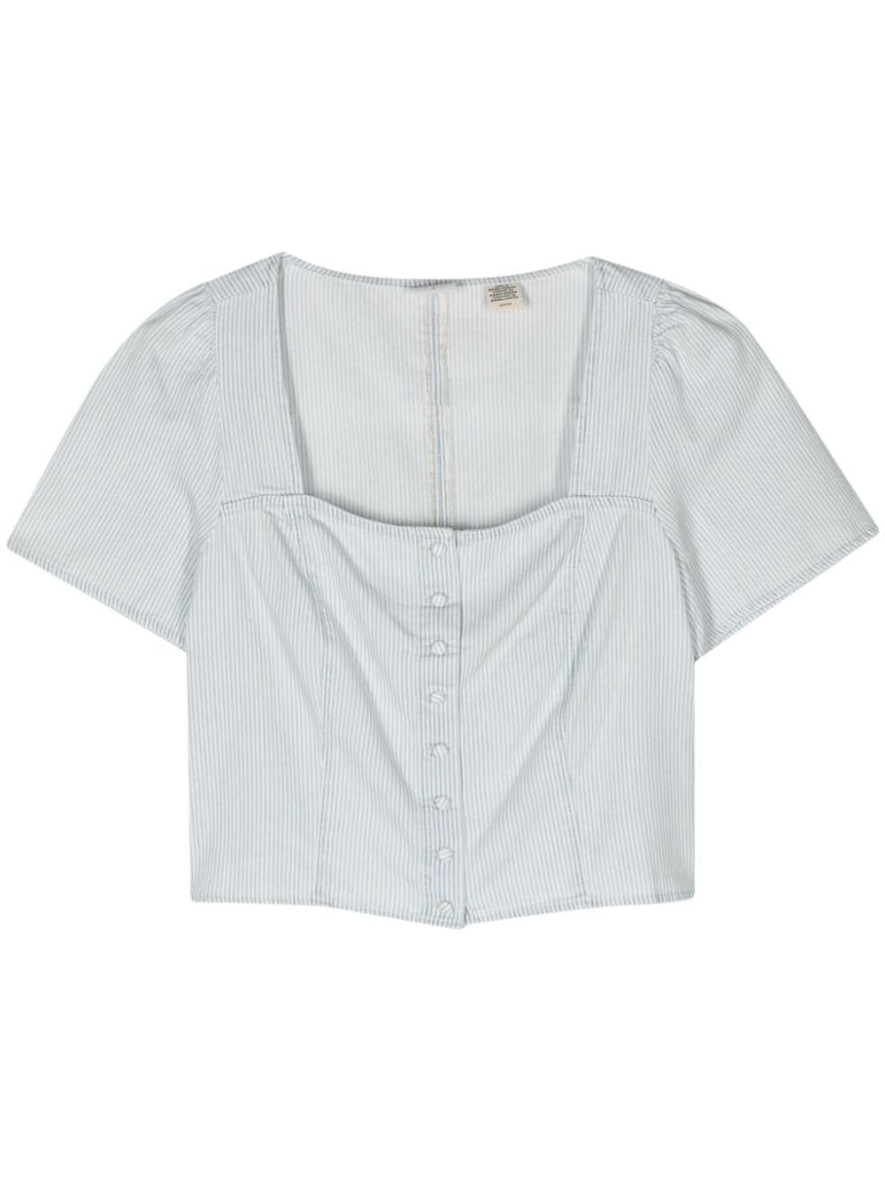 Pascale striped denim blouse Highlights - Blue/white - Cotton - Denim - Lightweight construction - Ruched detailing - Seam detailing - Mini logo tag - Square neck - Front button fastening - Short sleeves - Straight hem Imported Composition Cotton 100%