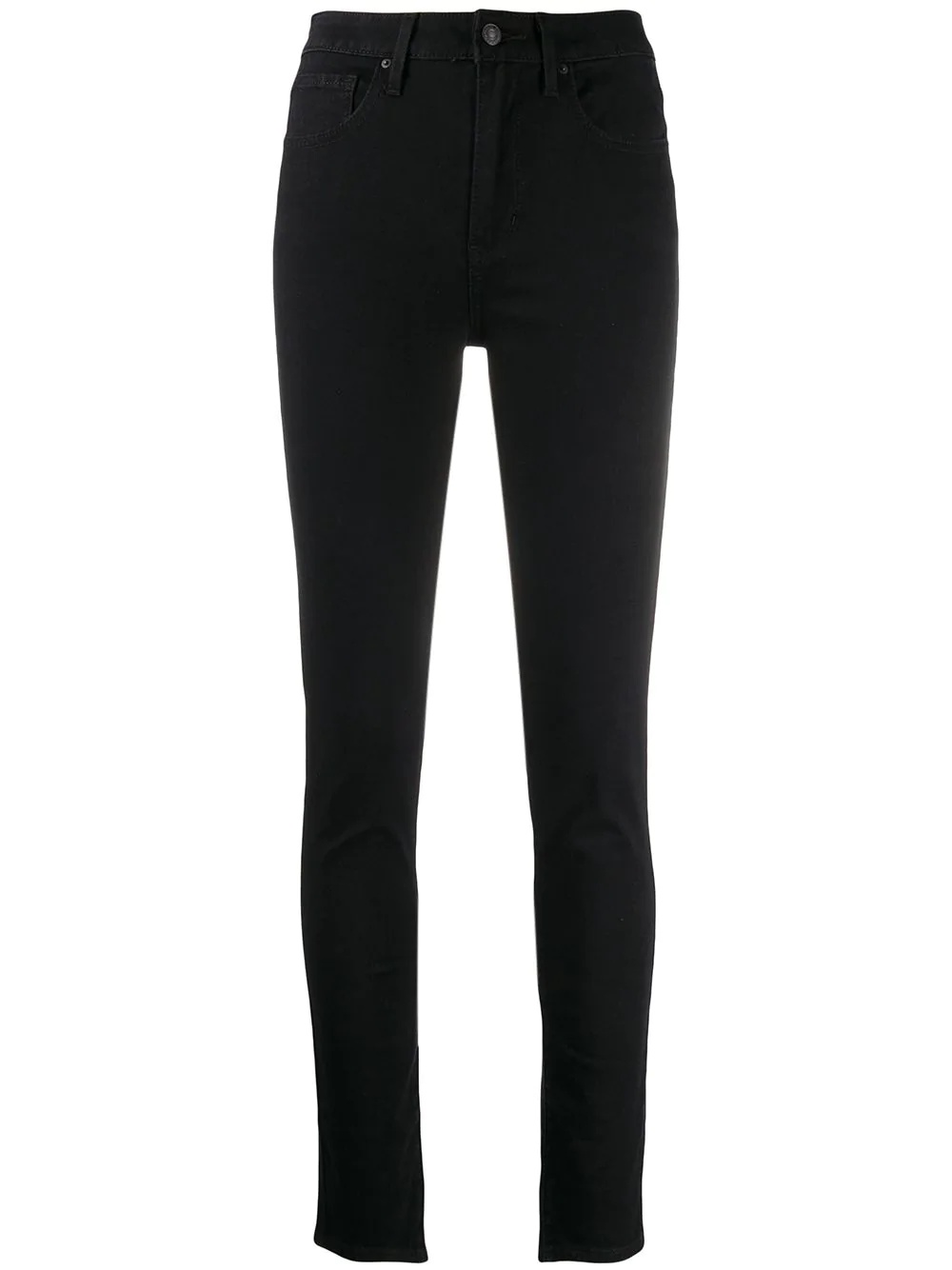 skinny jeans Black cotton blend skinny jeans from Levi's featuring a waistband with belt loops, a button and zip fly and a five pocket design. Imported Composition Cotton 74%, Polyester 22%, Spandex/Elastane 4% SIZE & FIT Model measurements Height 5 ft 10 in(1.77 m) Bust/Chest 35.03 in(89 cm) Hips 36.22 in(92 cm) Waist 25.98 in(66 cm) FittingInformation This piece fits true to size. We recommend you get your regular size Cut for a slim fit Made with a mid-weight stretch fabric Washing instructions Dry Clean Only