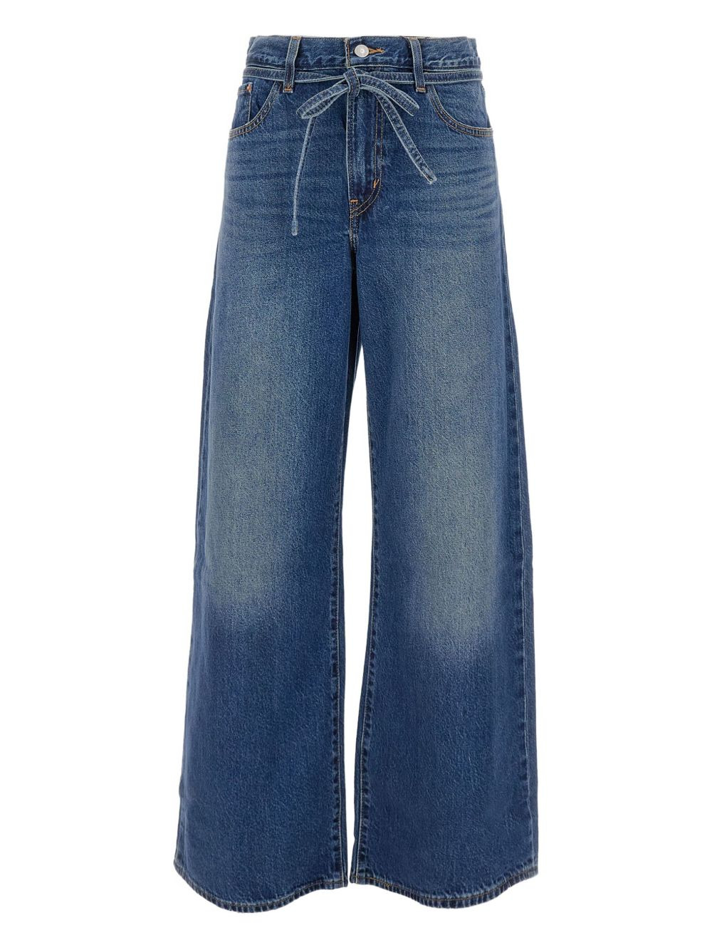 tie-waist jeans Highlights - Blue - Tie waist - Belt loops - Five pockets - Button fly Imported Composition Cotton 100% Washing instructions Read Manufacturer Guidelines