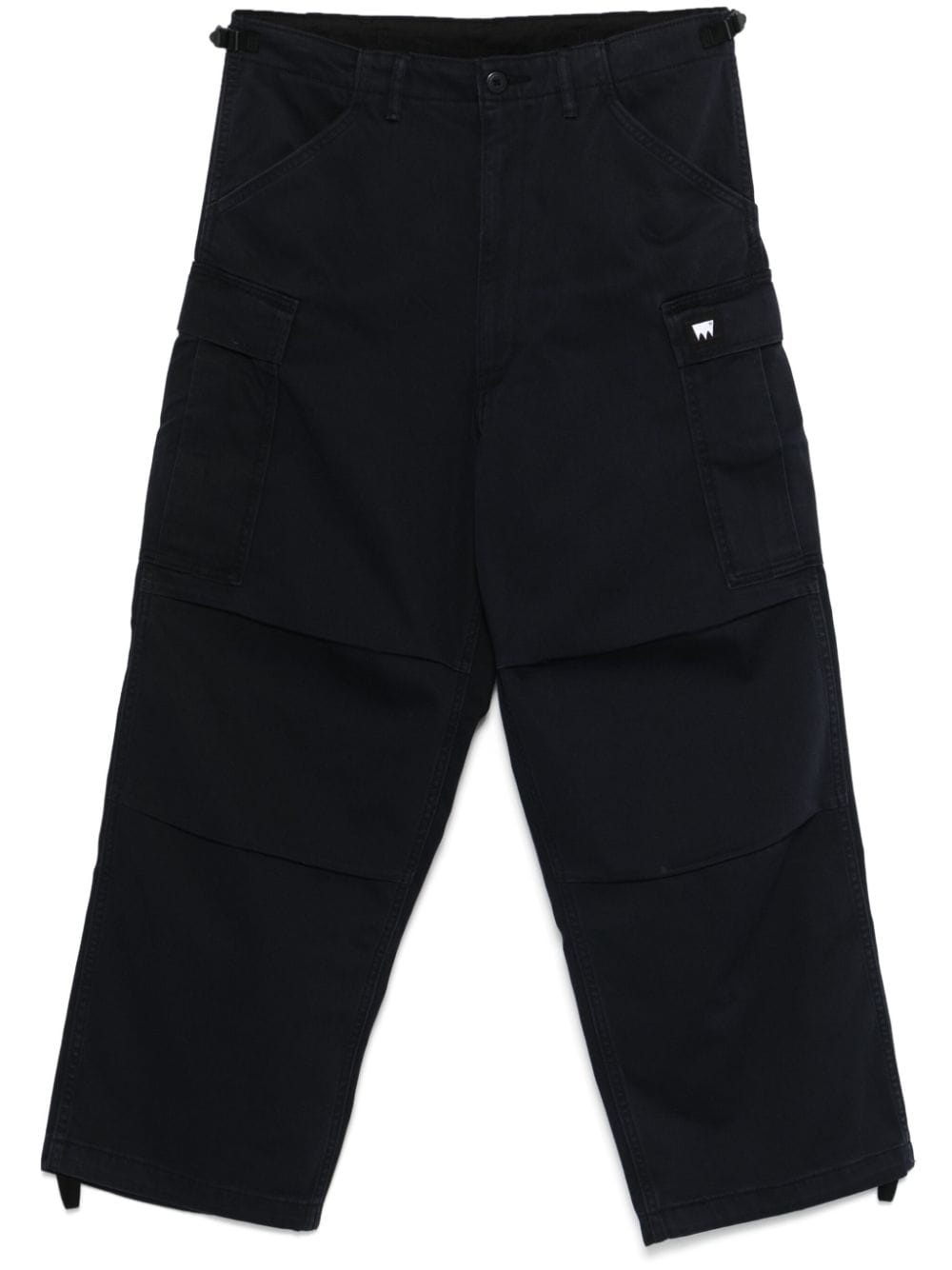 wide-leg cargo pants Highlights - Black - Cotton blend - Twill weave - Front button and zip fastening - Adjustable side straps - Belt loops - Two side inset pockets - Two side cargo pockets - Two rear flap pockets - Drawstring cuffs Imported Composition Cotton 68%, Polyamide 20%, Elastomultiester 12% Washing instructions Machine Wash