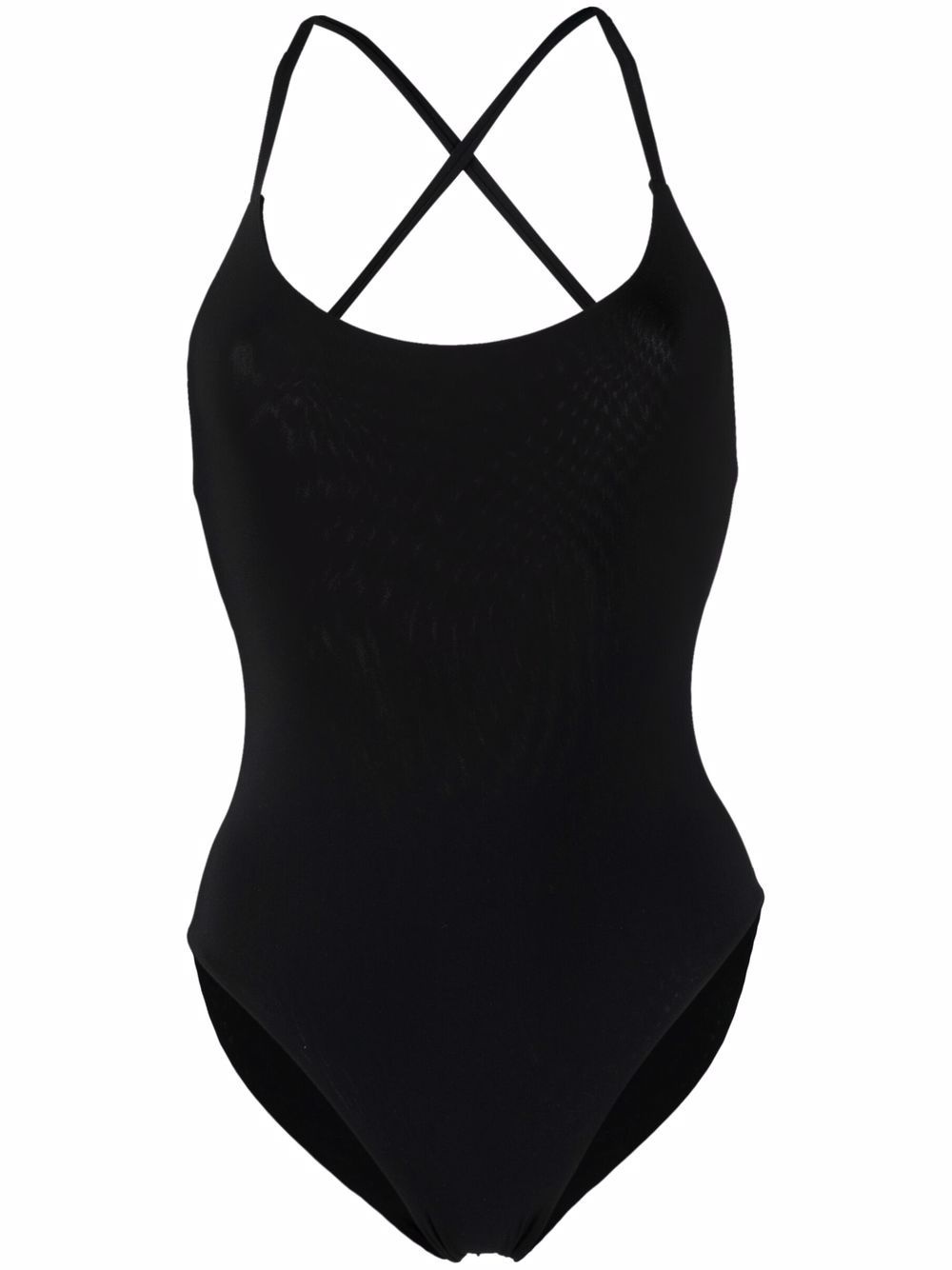 criss-cross back swimsuit black stretch-design rear criss-cross straps scoop neck low back Be mindful to try on swimwear over your own garments. Made in Italy Composition Polyamide 68%, Spandex/Elastane 32%