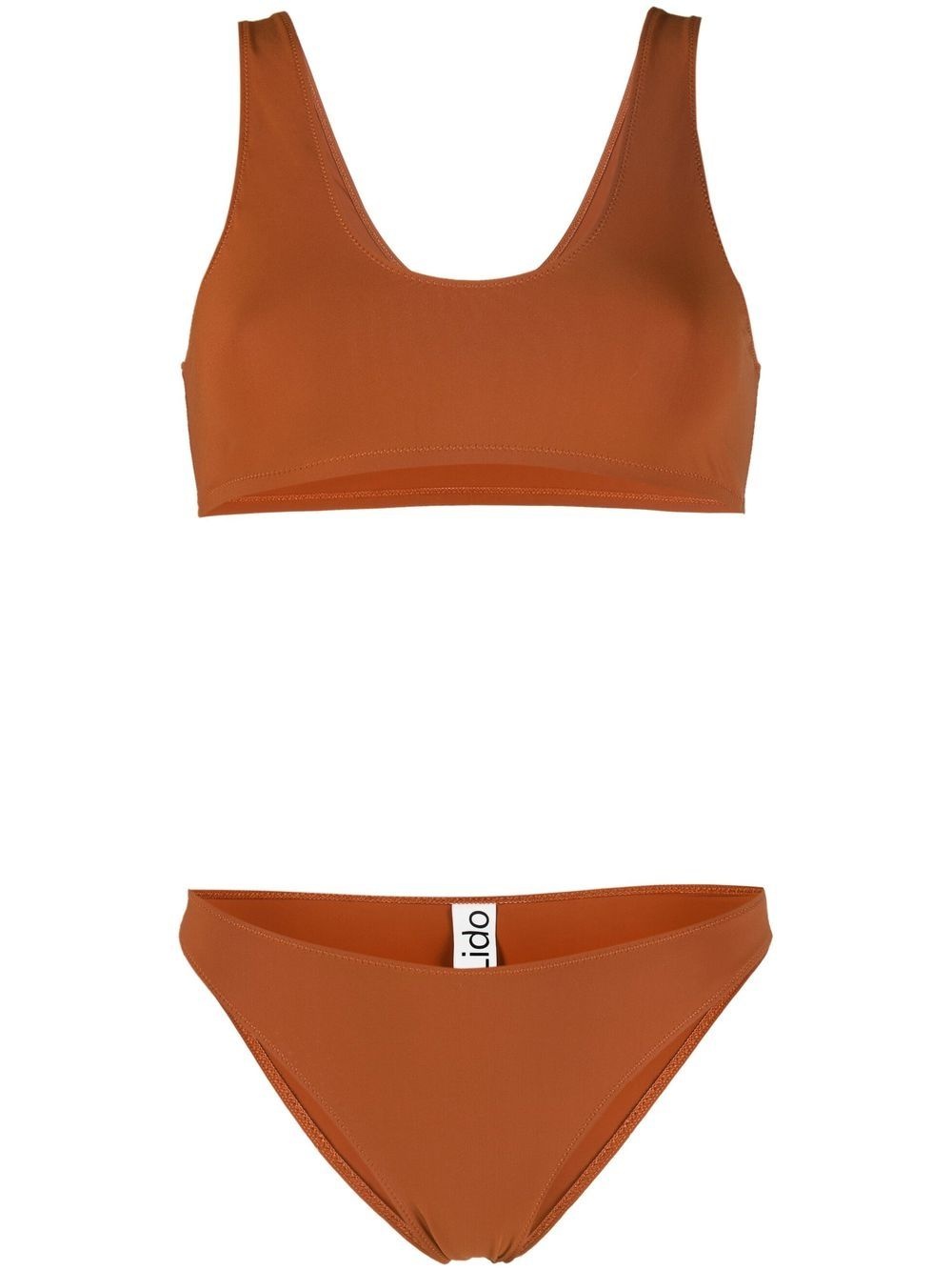 stretch-fit bikini terracotta brown stretch-design pull-on style tonal stitching Top: U-neck Bottoms: high cut Be mindful to try on swimwear over your own garments. Made in Italy Composition Polyamide 68%, Spandex/Elastane 32%