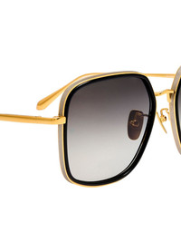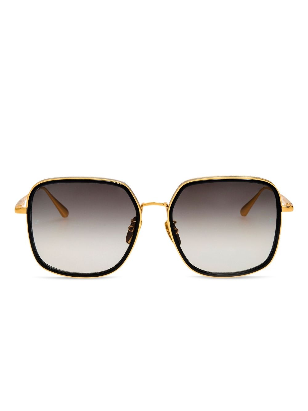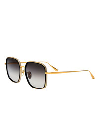 gold-frame squared sunglasses Highlights - Yellow gold - Square frame - Grey lenses - Subtle engraved detailing - These glasses come with a protective case. Imported Composition 22kt Yellow Gold 100%, Titanium 100% SIZE & FIT Measurement Arm Length 5.7 in(14.5 cm) Bridge Width 0.62 in(1.6 cm) Lens Diameter 2.48 in(6.3 cm)