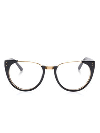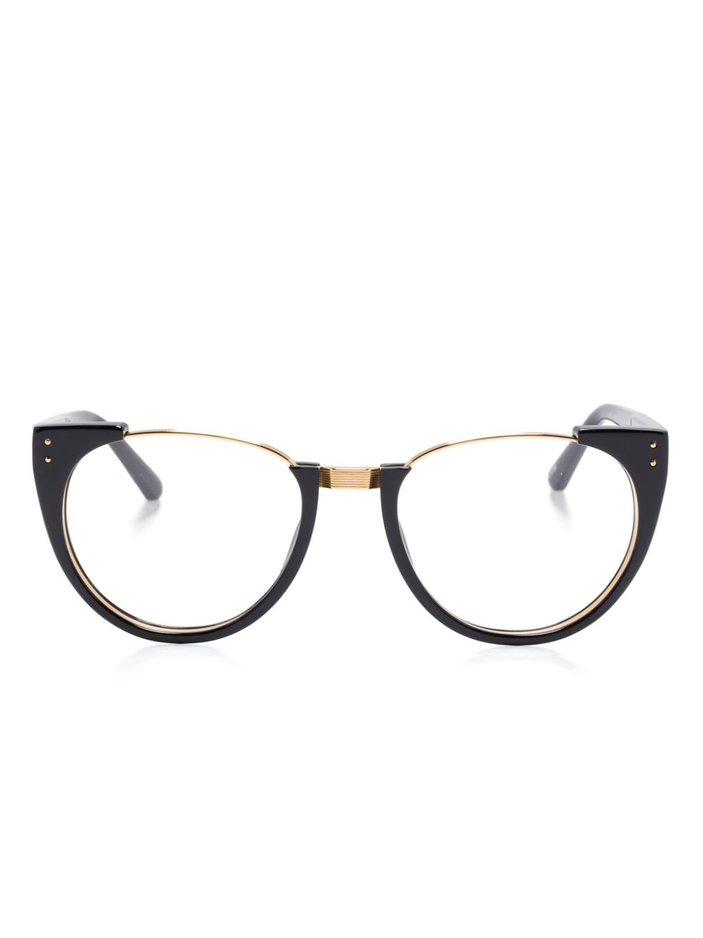 Iris glasses Highlights - Black - Round frame - Straight arms - All glasses from farfetch are sold as non-prescription frames. - These glasses come with a protective case. Imported Composition Acetate 100%, Metal 100% SIZE & FIT Measurement Arm Length 5.7 in(14.5 cm) Bridge Width 0.74 in(1.9 cm) Lens Diameter 2.12 in(5.4 cm) Total Width 5.51 in(14 cm)