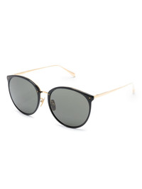 Kings round-frame sunglasses Highlights - Black/gold-tone - Round frame - Tinted lenses - Lens decal - Nose pads - Straight arms - Curved tips - These glasses come with a protective case. Imported Composition Metal 100% SIZE & FIT Measurement Arm Length 5.7 in(14.5 cm) Bridge Width 0.7 in(1.8 cm) Lens Diameter 2.28 in(5.8 cm) Total Width 5.51 in(14 cm)