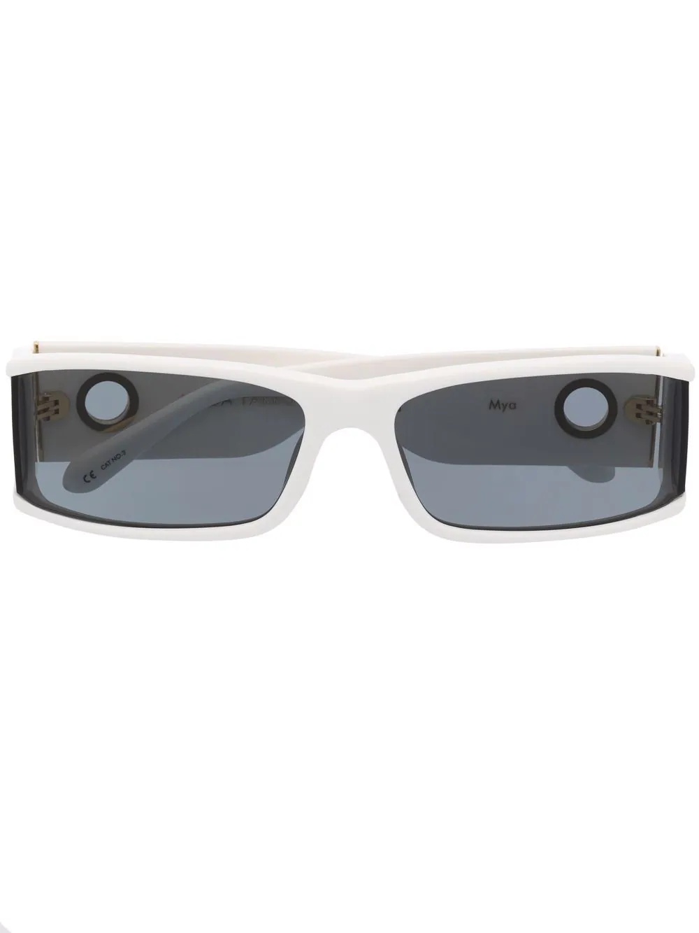 Mya rectangle-frame sunglasses white rectangle frame tinted lenses gold-tone logo plaque UV protection straight arms curved tips nose pads These glasses come with a protective case. All glasses from FARFETCH are sold as non-prescription frames. Imported Composition Plastic 100% SIZE & FIT Measurement Arm Length 5.51 in(14 cm) Bridge Width 0.66 in(1.7 cm) Lens Diameter 2.59 in(6.6 cm) Total Width 5.7 in(14.5 cm)