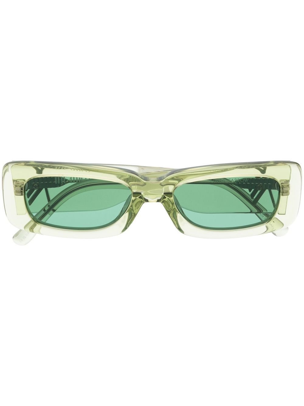 transparent-frame sunglasses sage green green tinted lenses logo plaque at the arm straight arms curved tips These glasses come with a protective case. Made in Italy Composition Acetate 100% SIZE & FIT Measurement Arm Length 5.51 in(14 cm) Bridge Width 0.74 in(1.9 cm) Lens Diameter 2.04 in(5.2 cm) Total Width 5.55 in(14.1 cm)