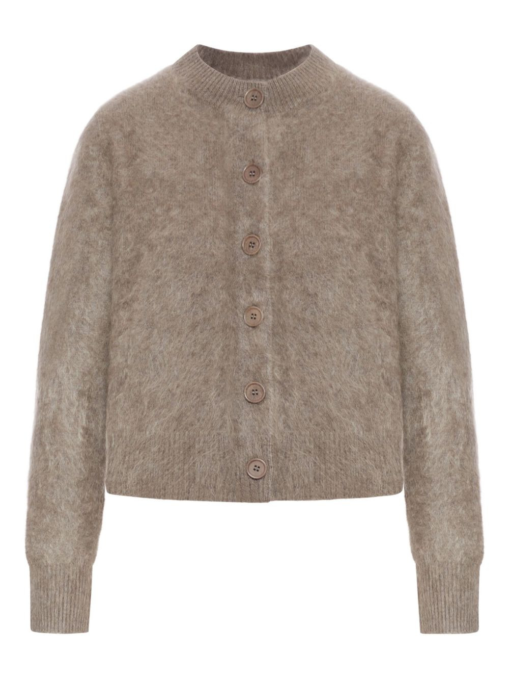brushed cashmere cardigan Highlights - Brown - Cashmere - Button fastening - Long sleeves - Ribbed cuffs - Brushed texture Imported Composition Cashmere 100% Washing instructions Read Manufacturer Guidelines