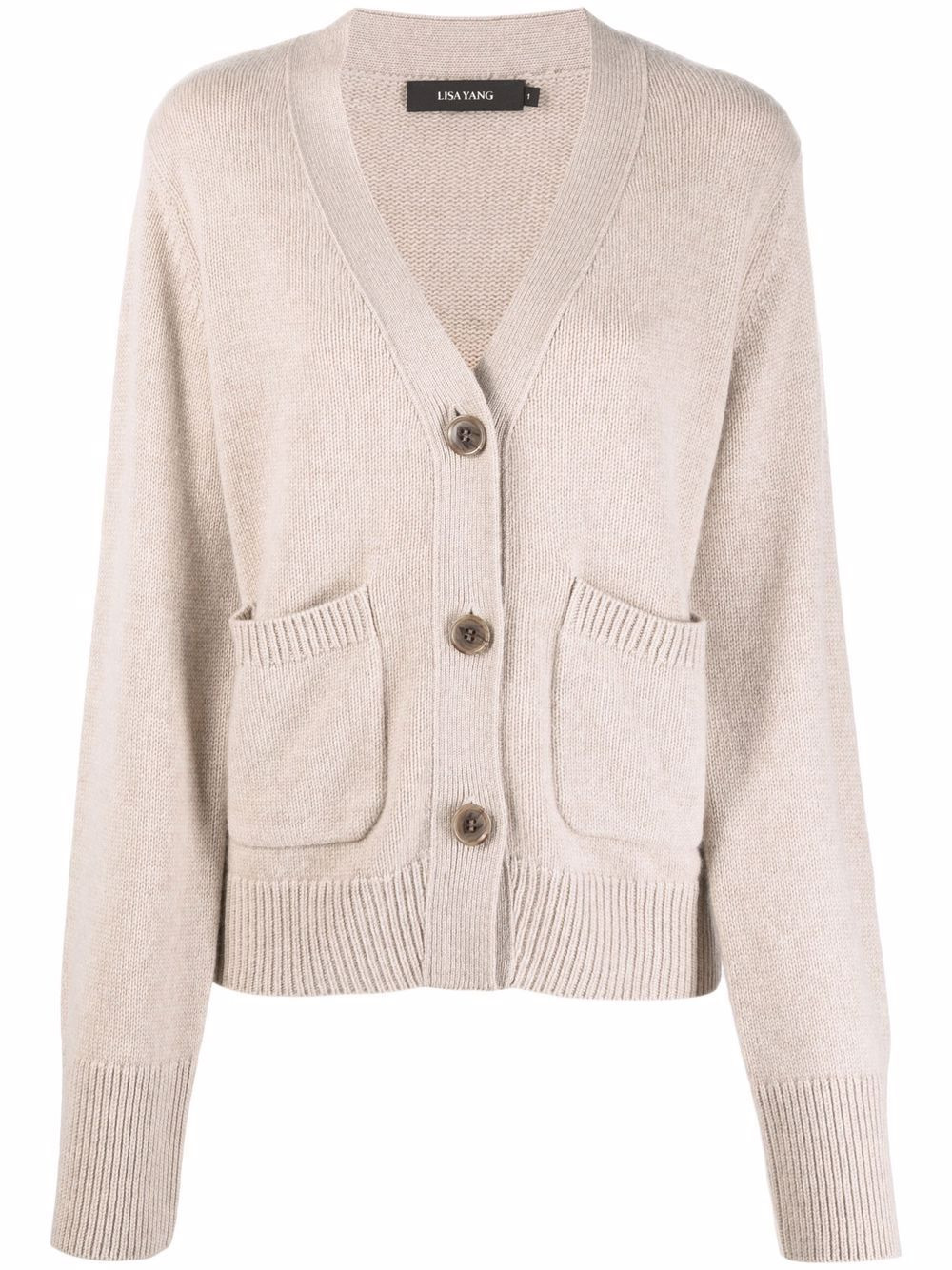 button-down knit cardigan beige cashmere knitted construction V-neck button fastening long sleeves fitted-cuff sleeves two side patch pockets Imported Composition Cashmere 100% SIZE & FIT Model measurements Height 5 ft 11 in(1.8 m) Bust/Chest 31.49 in(80 cm) Hips 35.82 in(91 cm) Waist 24.8 in(63 cm) FittingInformation This piece fits true to size. We recommend you get your regular size Cut for a loose fit Made with a mid-weight fabric