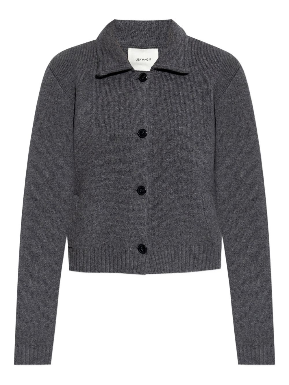 buttoned ribbed cardigan Highlights - Charcoal grey - Ribbed knit - Collared neckline - Button fastening - Patch pocket - Straight hemline Imported Composition Cashmere 100% Washing instructions Read Manufacturer Guidelines