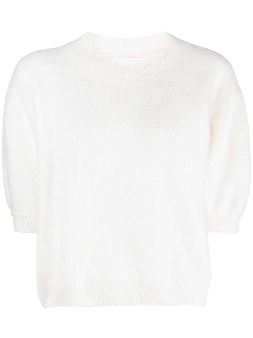 crew-neck cashmere jumper Highlights - Cream white - Cashmere - Knitted construction - Fine knit - Crew neck - Short sleeves - Ribbed cuffs and hem - Cropped - Straight hem Imported Composition Cashmere 100% SIZE & FIT Model measurements Height 5 ft 10 in(1.77 m) Bust/Chest 32.28 in(82 cm) Hips 35.03 in(89 cm) Waist 25.19 in(64 cm) Measurement CHEST 40.15 in(102 cm) LENGTH 20.07 in(51 cm) WAIST 37 in(94 cm) FittingInformation Designed for a relaxed fit, this piece allows for comfort and movement when worn Made with a midweight knit, this piece offers some stretch This piece fits true to size – take your usual size Washing instructions Dry Clean Only