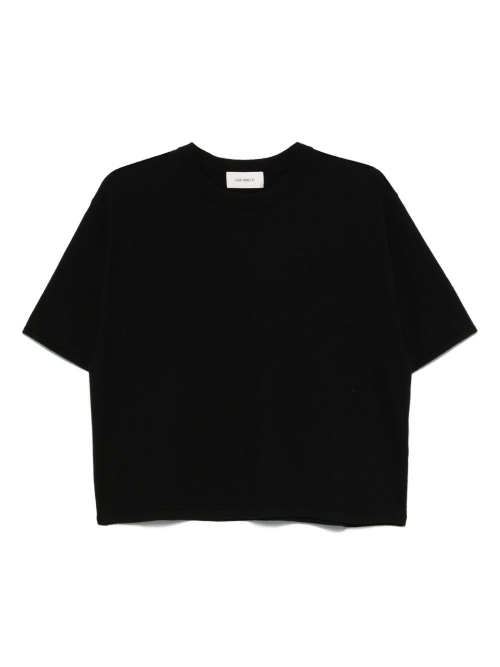 knitted T-Shirt Highlights - Black - Round neck - Short sleeves Imported Composition Cotton 70%, Cashmere 30%