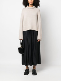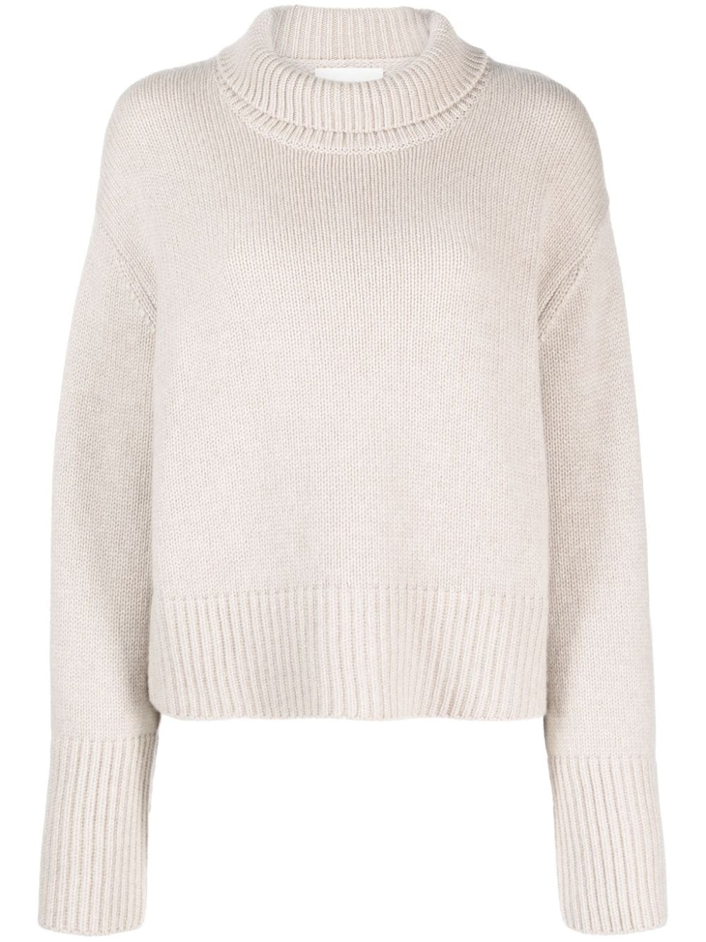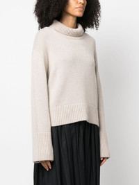 roll-neck cashmere jumper Highlights - Beige - Cashmere - Knitted construction - Roll neck - Drop shoulder - Long sleeves - Flared cuffs - Ribbed trim Imported Composition Cashmere 100% SIZE & FIT Model measurements Height 5 ft 10 in(1.78 m) Bust/Chest 33.07 in(84 cm) Hips 36.61 in(93 cm) Waist 24.8 in(63 cm) FittingInformation Designed for a relaxed fit, this piece allows for comfort and movement when worn Made with a midweight knit, this piece offers some stretch This piece fits true to size – take your usual size