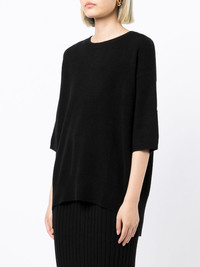 short-sleeve cashmere top black cashmere fine knit round neck half-length sleeves straight hem Imported Composition Cashmere 100% SIZE & FIT Model measurements Height 5 ft 10 in(1.78 m) Bust/Chest 28.34 in(72 cm) Hips 35.43 in(90 cm) Waist 23.62 in(60 cm) FittingInformation This piece fits true to size. We recommend you get your regular size Cut for a loose fit Made with a lightweight fabric Washing instructions Hand Wash