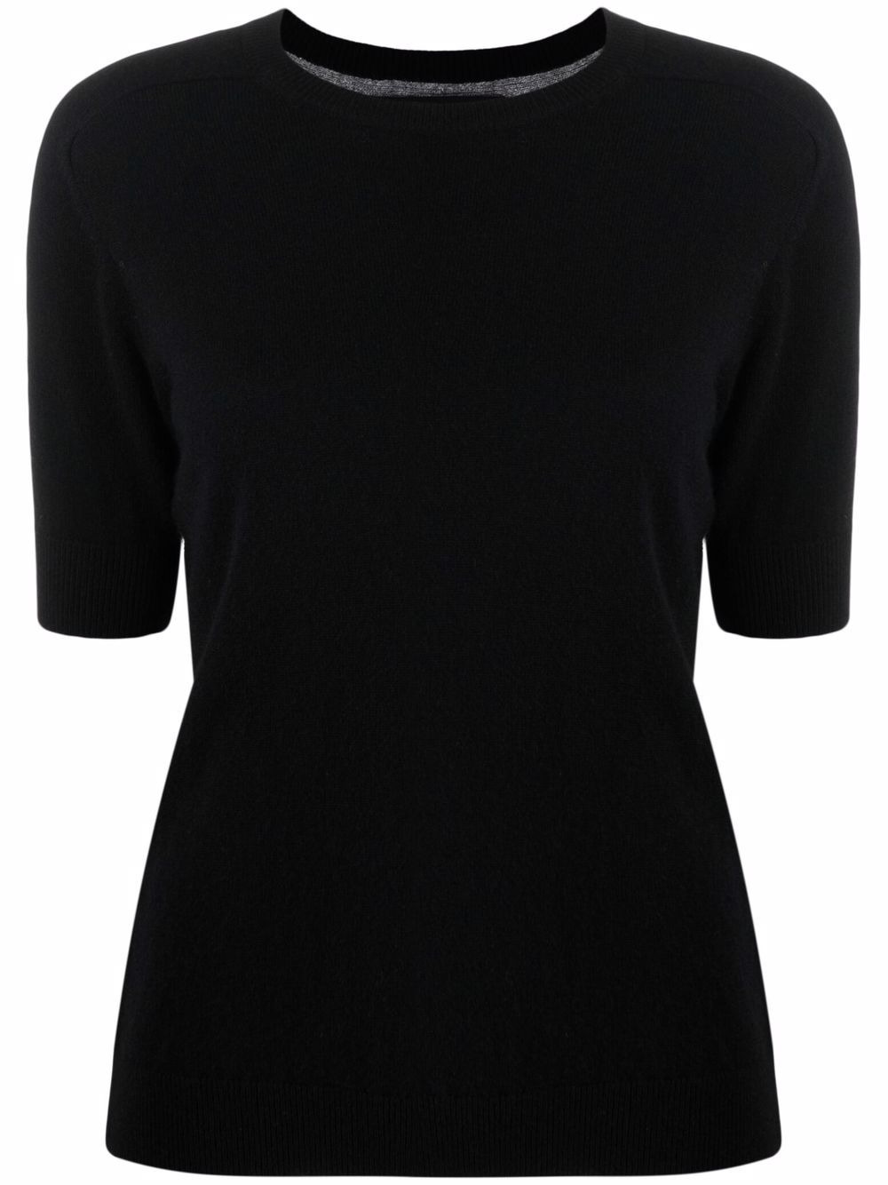 short-sleeve cashmere top black cashmere knitted construction crew neck short sleeves Imported Composition Cashmere 100% SIZE & FIT Model measurements Height 5 ft 9 in(1.75 m) Bust/Chest 34.64 in(88 cm) Hips 36.61 in(93 cm) Waist 26.37 in(67 cm) FittingInformation This piece fits true to size. We recommend you get your regular size Cut for a relaxed fit Made with a mid-weight fabric