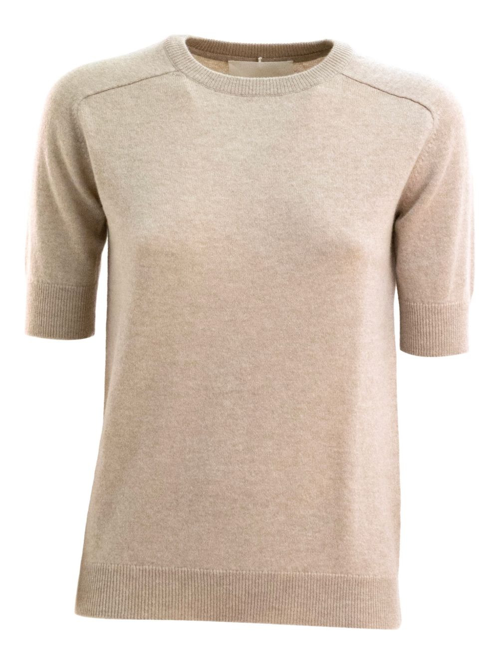 short-sleeve round-neck T-shirt Highlights - Beige - Short sleeves - Round neck - Ribbed hem - Plain weave Imported Composition Cashmere 100% Washing instructions Read Manufacturer Guidelines