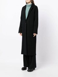 single-breasted fitted coat black cashmere classic lapels button fastening long sleeves mid-length Made in Italy Composition Cashmere 100% SIZE & FIT Model measurements Height 5 ft 11 in(1.8 m) Bust/Chest 28.34 in(72 cm) Hips 35.43 in(90 cm) Waist 23.62 in(60 cm) FittingInformation This piece fits true to size. We recommend you get your regular size Cut for a loose fit Made with a mid-weight fabric Washing instructions Hand Wash