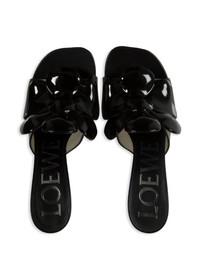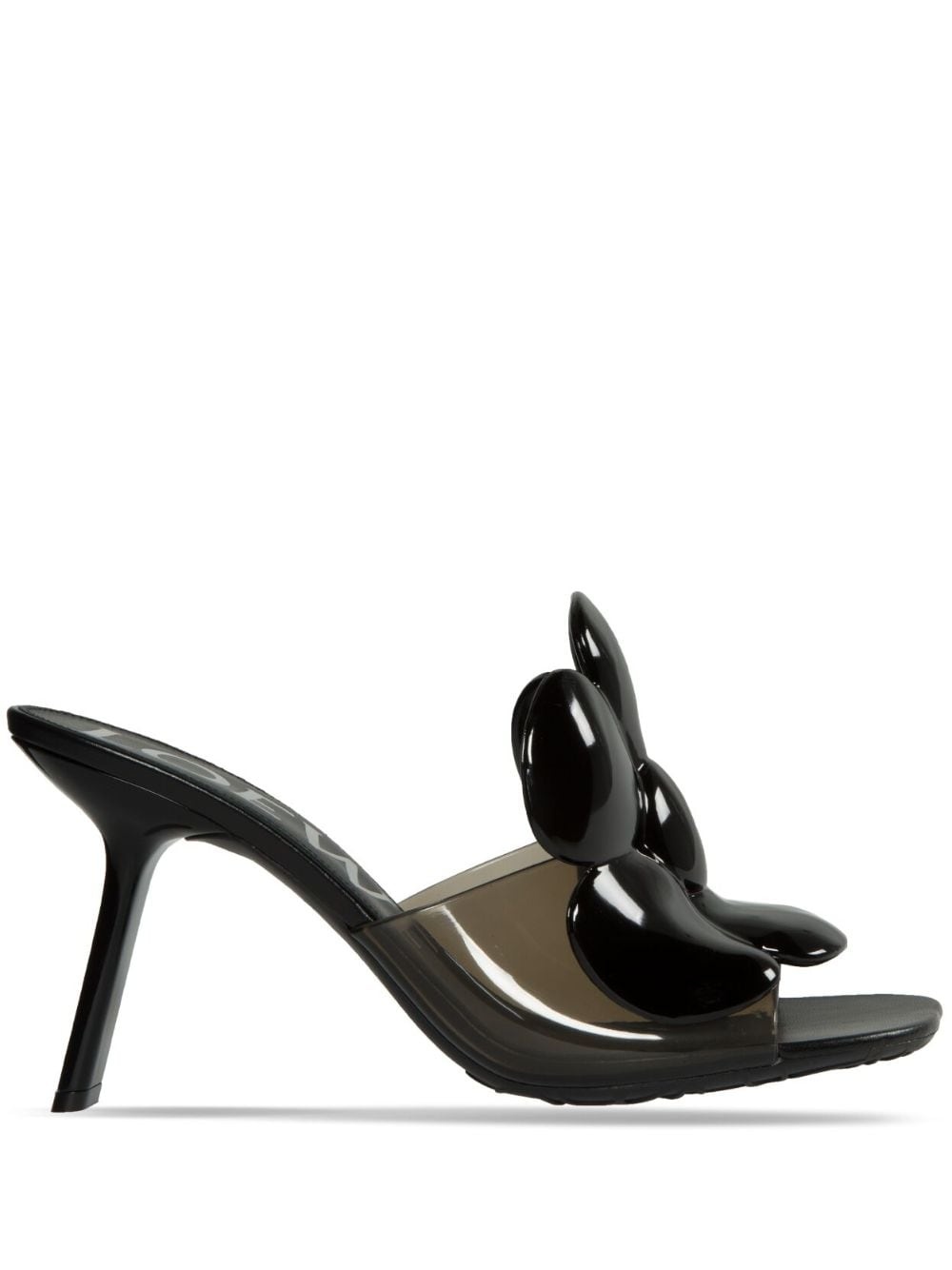 90mm Petal Flower sandals Highlights - Black - Calf leather - Patent finish - Transparent design - Slip-on style - 90mm high heel - Floral applique - Single toe strap - Square open toe - Branded footbed - Leather sole Made in Italy Composition Lining: Calf Leather 100% Outer: PVC 100% Sole: Calf Leather 100% SIZE & FIT Measurement HEEL 3.54 in(9 cm)