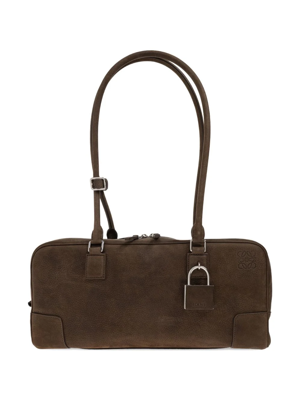 Amazona padlock tote bag Highlights - Brown - Silver-tone hardware - Zip fastening - Top handles - Padlock detail - Logo detail Imported Composition Outer: Lamb Nubuck Leather 100% SIZE & FIT Measurement DEPTH 3.54 in(9 cm) HEIGHT 5.9 in(15 cm) WIDTH 12 in(30.5 cm)