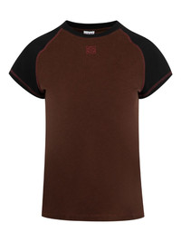 Anagram-embroidered T-shirt Highlights - Burgundy/black - Short raglan sleeves - Crew neck - Signature embroidered anagram motif Imported Composition Elastane 100%, Viscose 100%, Cotton 100% Washing instructions Read Manufacturer Guidelines