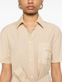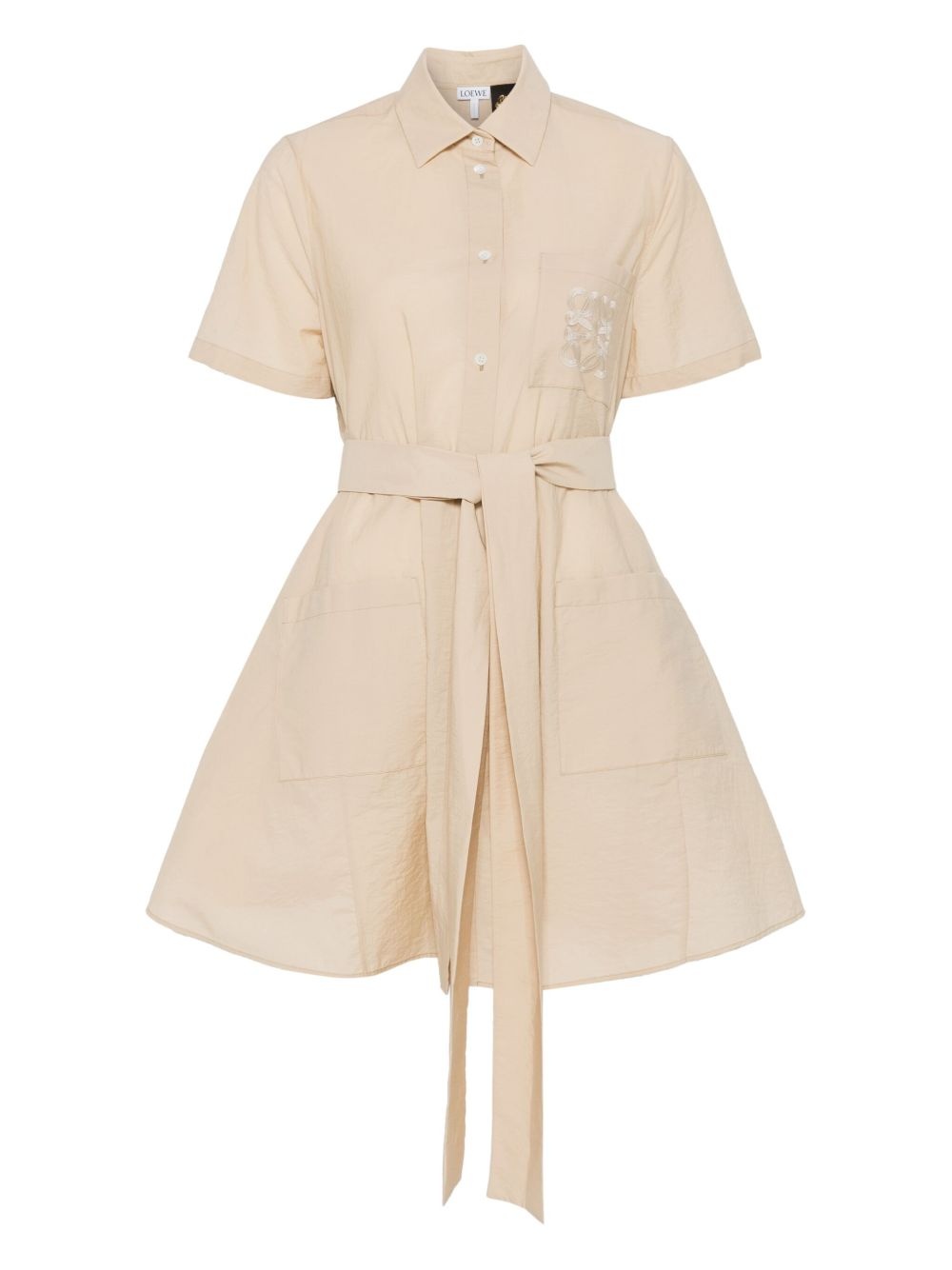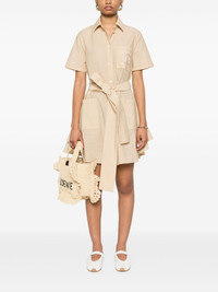 Anagram-motif mini dress Highlights - Light beige - Front button fastening - Chest patch pocket - Two side patch pockets - Detachable waist belt Made in Italy Composition Cotton 79%, Polyamide 21% SIZE & FIT Model measurements Height 5 ft 10 in(1.78 m) Bust/Chest 32.67 in(83 cm) Hips 35.43 in(90 cm) Waist 23.22 in(59 cm) FittingInformation Designed to be unstructured, offering a loose fit throughout The adjustable tie waist gives a more adaptable and personalised fit Made from a lightweight non-stretch fabric Washing instructions Hand Wash