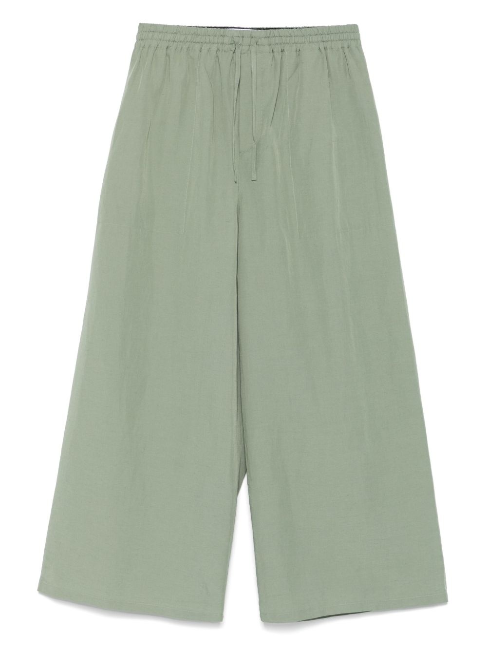 Anagram-patch trousers Highlights - Moss green - Elasticated drawstring waistband - Two side inset pockets - Rear patch pocket Made in Italy Composition Outer: Polyester 100%, Viscose 68%, Linen/Flax 32% Lining: Cotton 100% SIZE & FIT Model measurements Height 6 ft 0 in(1.84 m) Bust/Chest 37.79 in(96 cm) Hips 37 in(94 cm) Waist 31.49 in(80 cm) FittingInformation Designed with a wide leg, offering a loose and roomy fit Adjust this piece’s waistband to your preference using the drawstring Made from a midweight non-stretch fabric Washing instructions Dry Clean Only