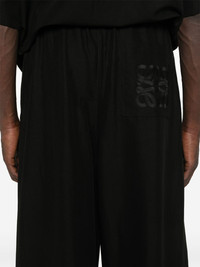 Anagram-patch trousers Highlights - Black Made in Italy Composition Outer: Viscose 68%, Linen/Flax 32% Lining: Cotton 100% SIZE & FIT Model measurements Height 6 ft 0 in(1.84 m) Bust/Chest 37.79 in(96 cm) Hips 37 in(94 cm) Waist 31.49 in(80 cm) FittingInformation Designed with a wide leg, offering a loose and roomy fit Adjust this piece’s waistband to your preference using the drawstring Made from a midweight non-stretch fabric
