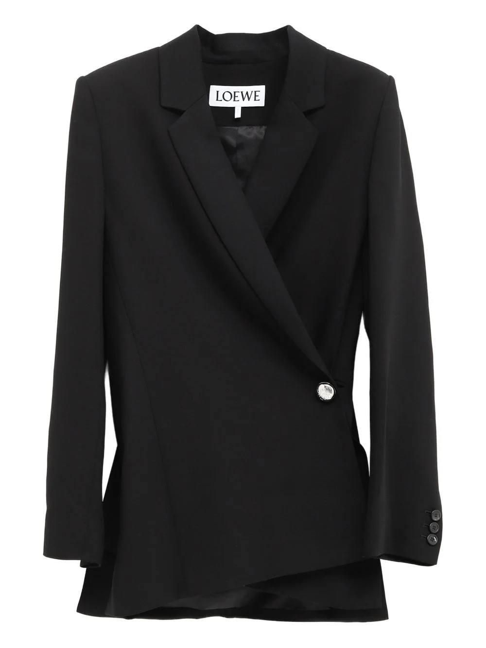 asymmetric single-button blazer Highlights - Black - Notch lapel - Buttoned cuffs - Back vents - Fully lined Made in Italy Composition Viscose 96%, Elastane 4% Washing instructions Read Manufacturer Guidelines