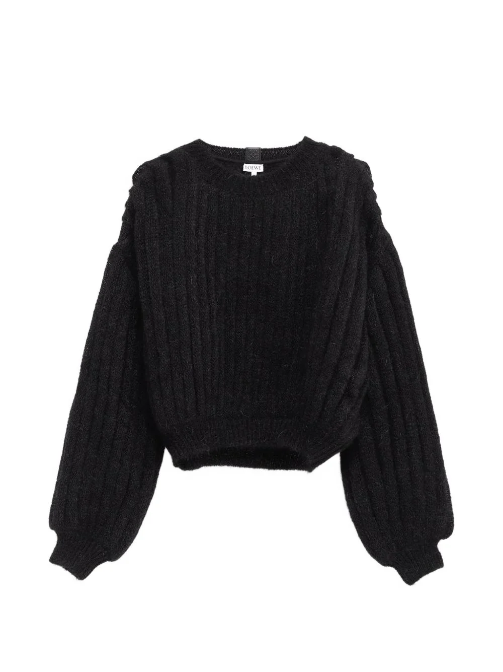 balloon-sleeve knitwear Highlights - Black - Balloon sleeves - Ribbed knit - Round neck - Long sleeves - Cropped Made in Italy Composition Mohair 47%, Polyamide 25%, Cotton 23%, Wool 5% Washing instructions Read Manufacturer Guidelines