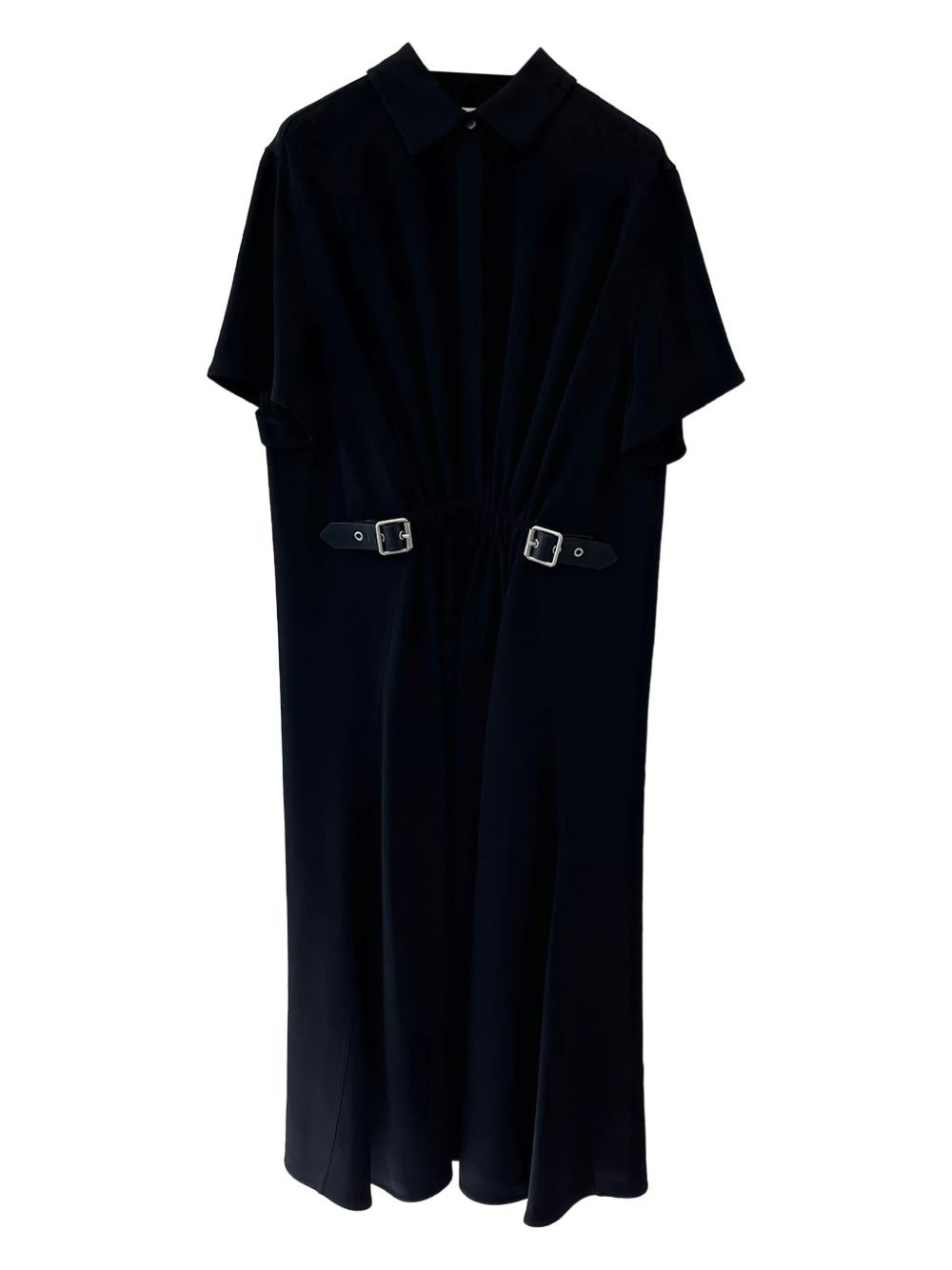 belted buckle midi dress Highlights - Black - Collared neckline - Short sleeves - Cinched waist - Buckle detailing Made in Italy Composition Fabric 100% Washing instructions Read Manufacturer Guidelines