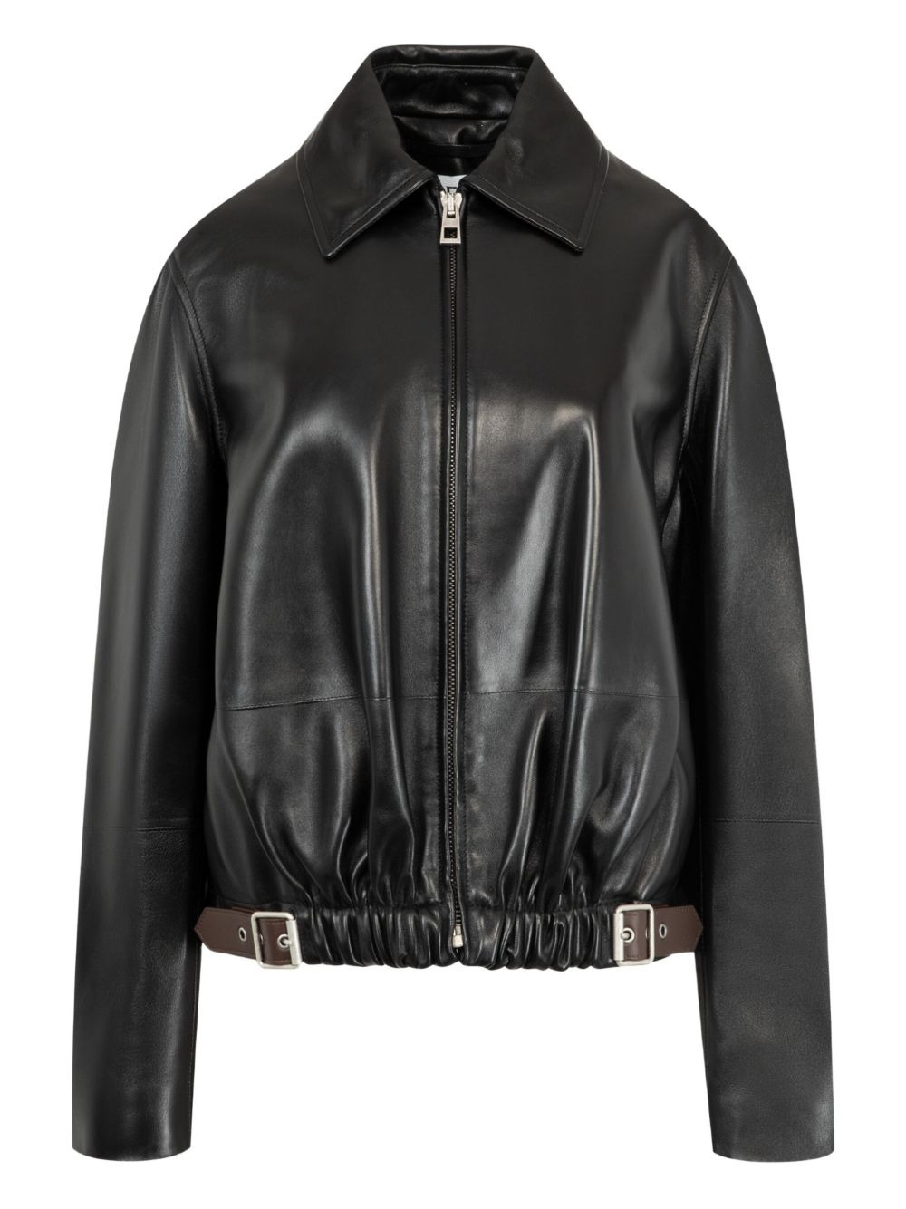 belted leather jacket Highlights - Black - Leather - Elasticated hem - Belted waist - Zip fastening - Classic collar - Long sleeves Made in Italy Composition Nappa Leather 100% Washing instructions Read Manufacturer Guidelines