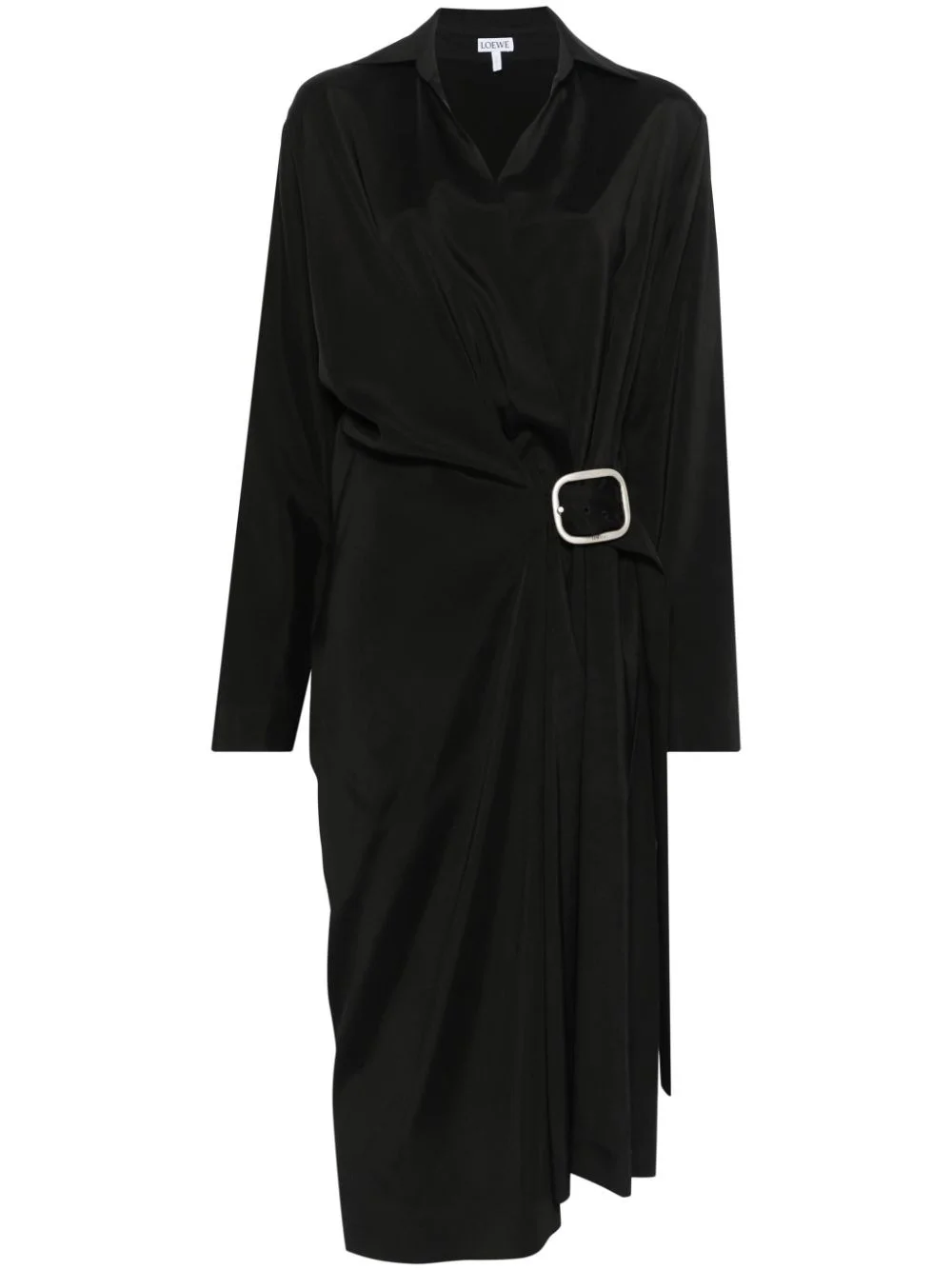 belted midi dress Highlights - Black - Buckle fastening - Wrap design - Two side slit pockets - Unlined Made in Italy Composition Outer: Cotton 100%, Viscose 96%, Elastane 4% Lining: Cotton 100% SIZE & FIT Model measurements Height 5 ft 10 in(1.78 m) Bust/Chest 33.85 in(86 cm) Hips 36.61 in(93 cm) Waist 26.77 in(68 cm)